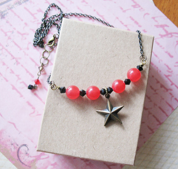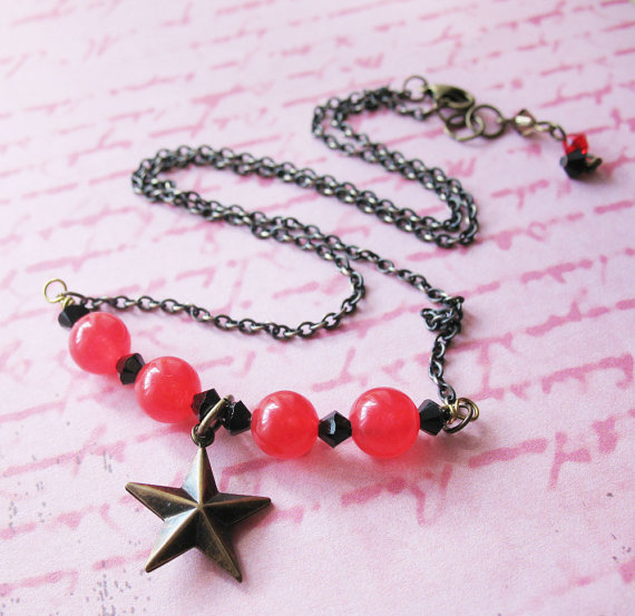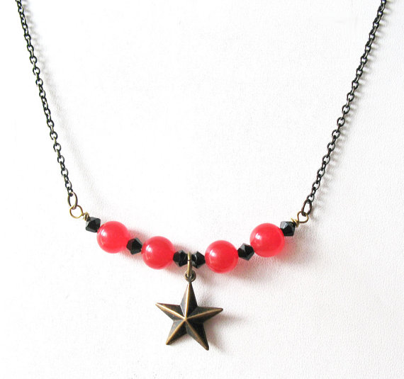 Red and Black with Nautical Star Rockabilly Inspired Necklace