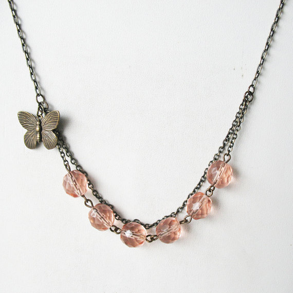 Delicate butterfly charm with peach color czech glass beads. Soft, beautiful color to wear on a special occasion, to work, or just to add to your super pretty outfit.