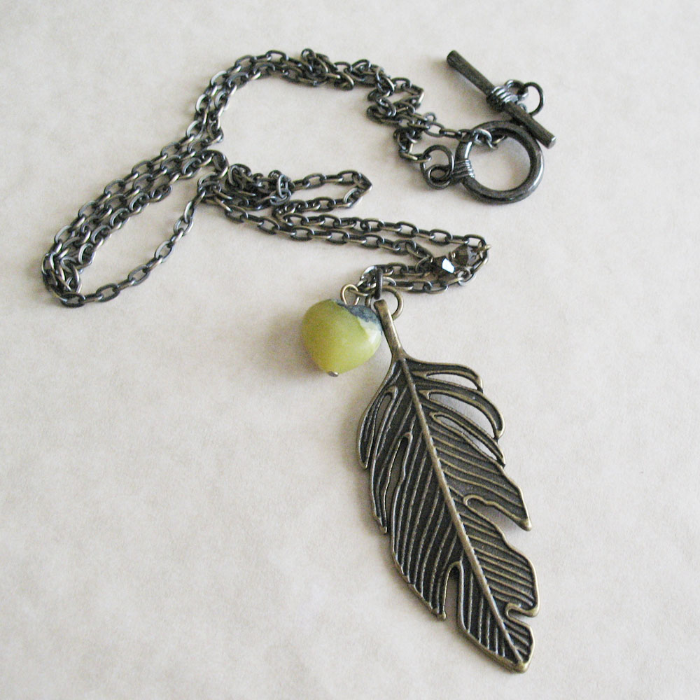 LONG Necklace Large Feather Charm Necklace Bohemian Chic Jewelry For Women