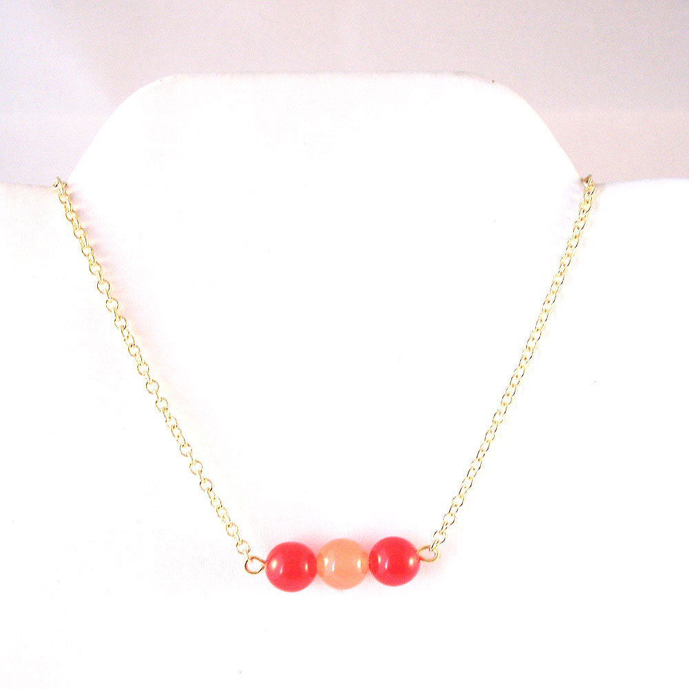 SALE Red and Peach Berry Bead Necklace. Red Peach Jade Beads. Gifts for Women.